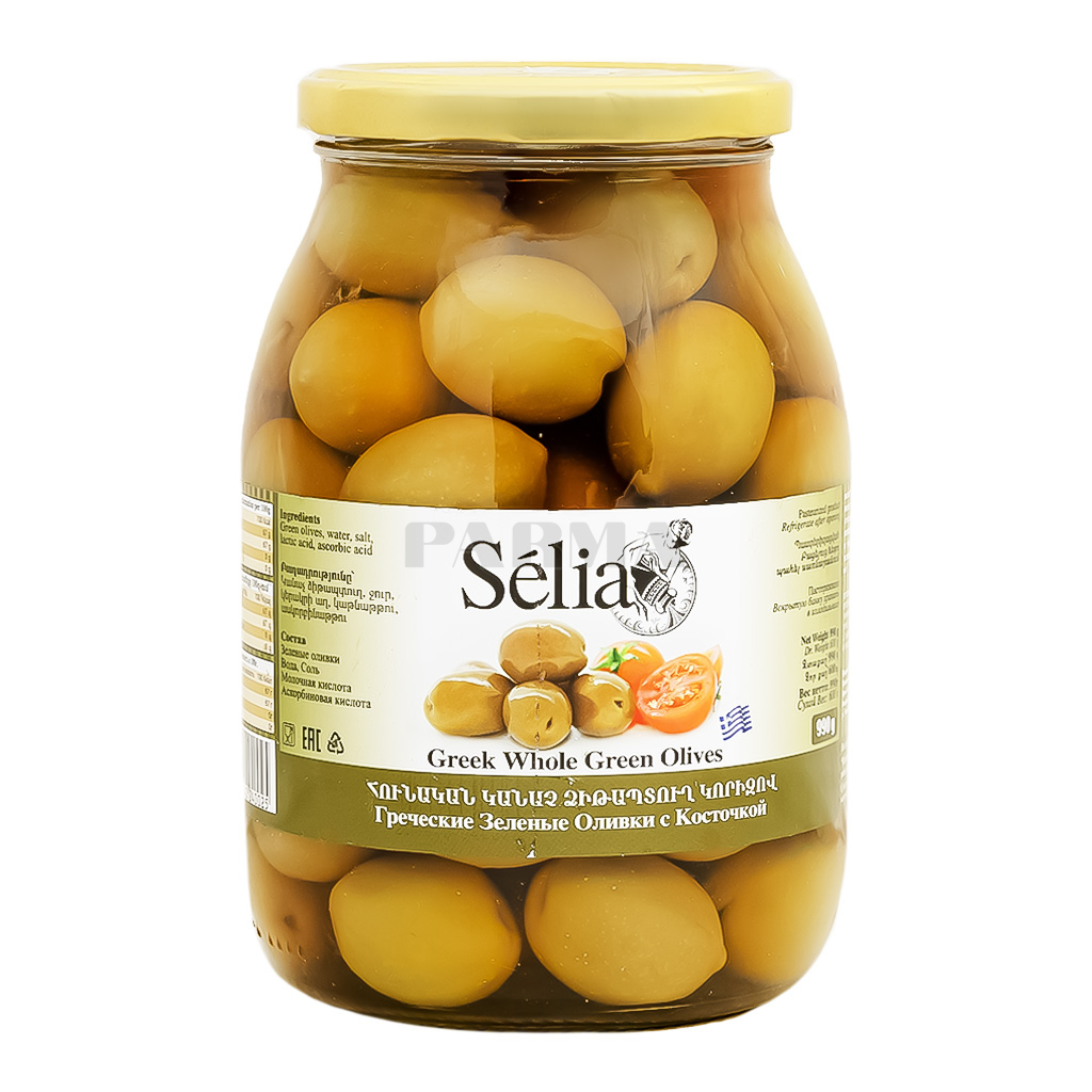 Ingredients: green olives, water, salt, lactic acid, ascorbic acid.