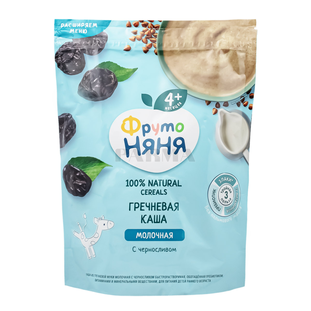 Ingredients: buckwheat flour, sugar, skimmed milk powder, vegetable oil, concentrated prune puree, vitamins, minerals.