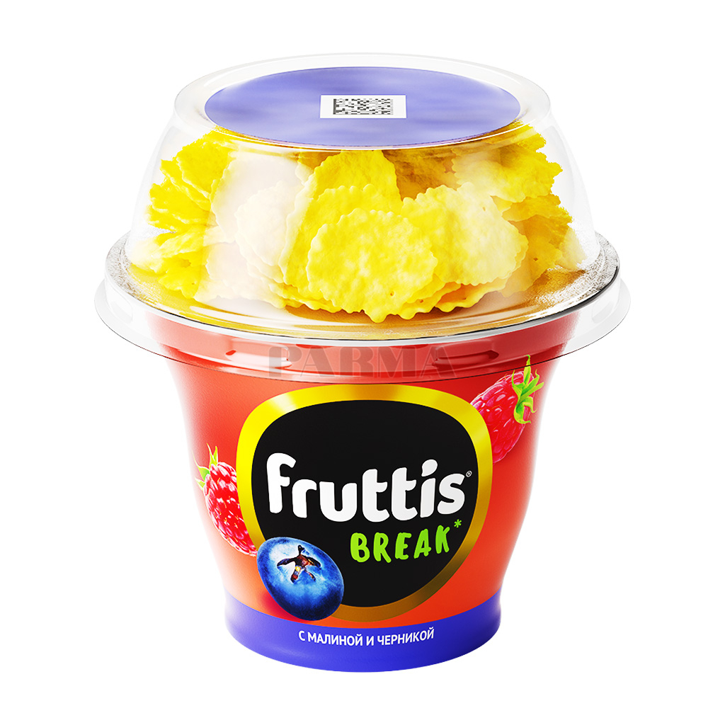 Յոգուրտային արտադրանք՝ ազնվամորի-հապալաս,եգիպտացորենի փաթիլներ, յուղայնությունը՝ 2.5%: